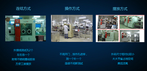 在線式高低溫試驗(yàn)箱設(shè)備可長期在線低溫運(yùn)行玻璃使用大視窗,門上附帶兩個(gè)可供操作的操作孔(硅膠防靜電),可在觀察產(chǎn)品的同時(shí)進(jìn)行取拿產(chǎn)品。高效:以10G SFP+為例,一個(gè)班(10個(gè)小時(shí))可產(chǎn)1800支模塊 -